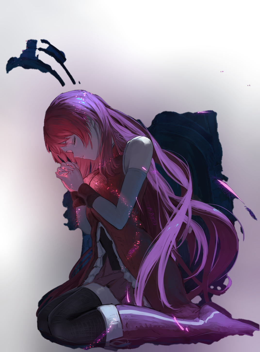 Kyoko praying with gradient bokeh blur background fill